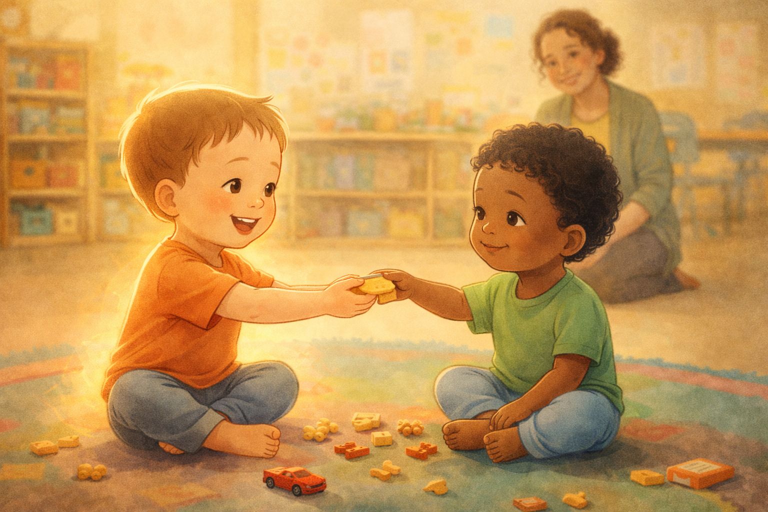 Researchers created a simple game where toddlers interacted with a puppet and a set of treats. Kids went through different scenarios: receiving treats, giving their own treats, giving extra treats, watching someone else give, and even giving to themselves.